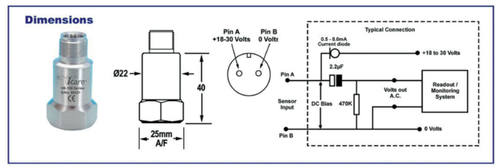 As I mentioned we are using an ICP sensor. These sensors are powered with a constant current DC source. The power supply is typically 18–30 Volts DC_current limited via a constant current diode between _2 and 20 mA. Typical battery operated supplies offer 2 mA of constant current to extend battery life while continuous monitoring systems offer more current in order to drive longer cables.